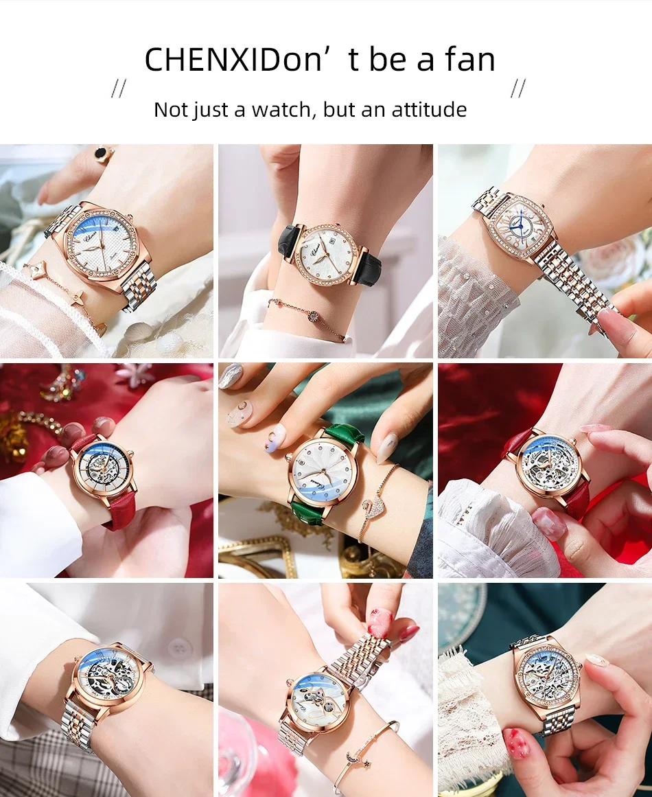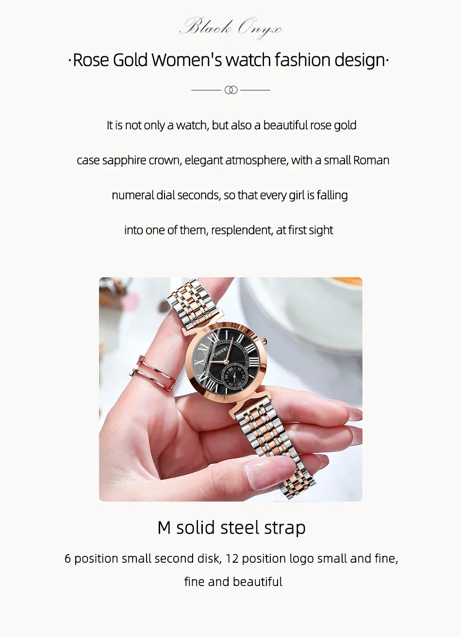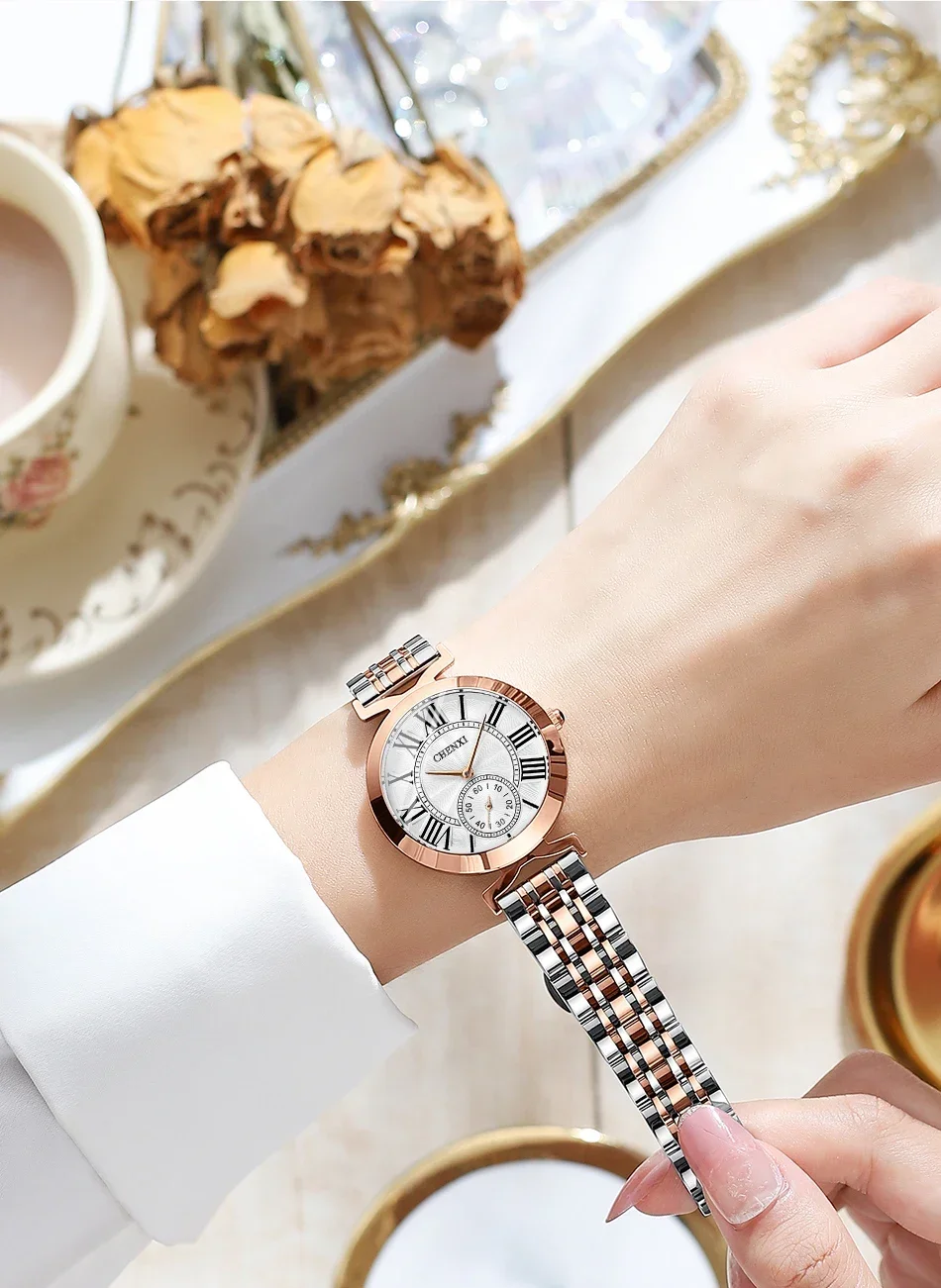 Embrace timeless elegance with the CHENXI CX-091, a sleek and refined ladies’ watch crafted to elevate everyday style. Featuring a polished stainless-steel bracelet and smooth round case, this timepiece delivers a luxurious yet modern look that pairs effortlessly with business wear, evening outfits, and casual ensembles alike. The minimalist, numberless dial lends a clean sophistication, while subtle detailing adds just the right touch of glamour.