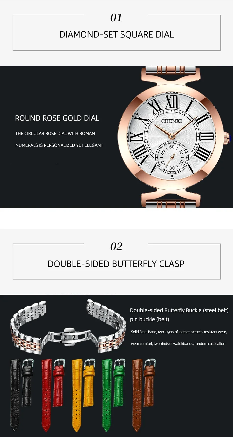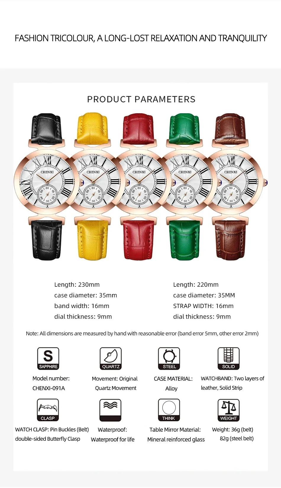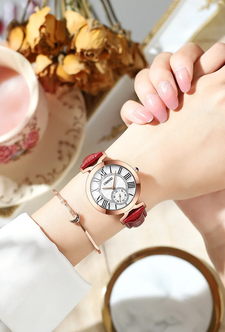 Embrace timeless elegance with the CHENXI CX-091, a sleek and refined ladies’ watch crafted to elevate everyday style. Featuring a polished stainless-steel bracelet and smooth round case, this timepiece delivers a luxurious yet modern look that pairs effortlessly with business wear, evening outfits, and casual ensembles alike. The minimalist, numberless dial lends a clean sophistication, while subtle detailing adds just the right touch of glamour.