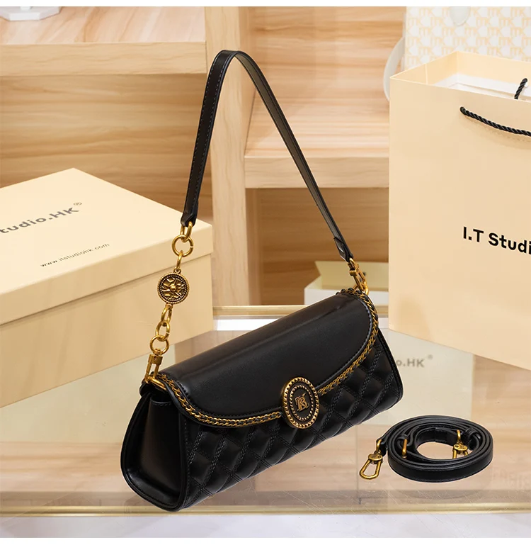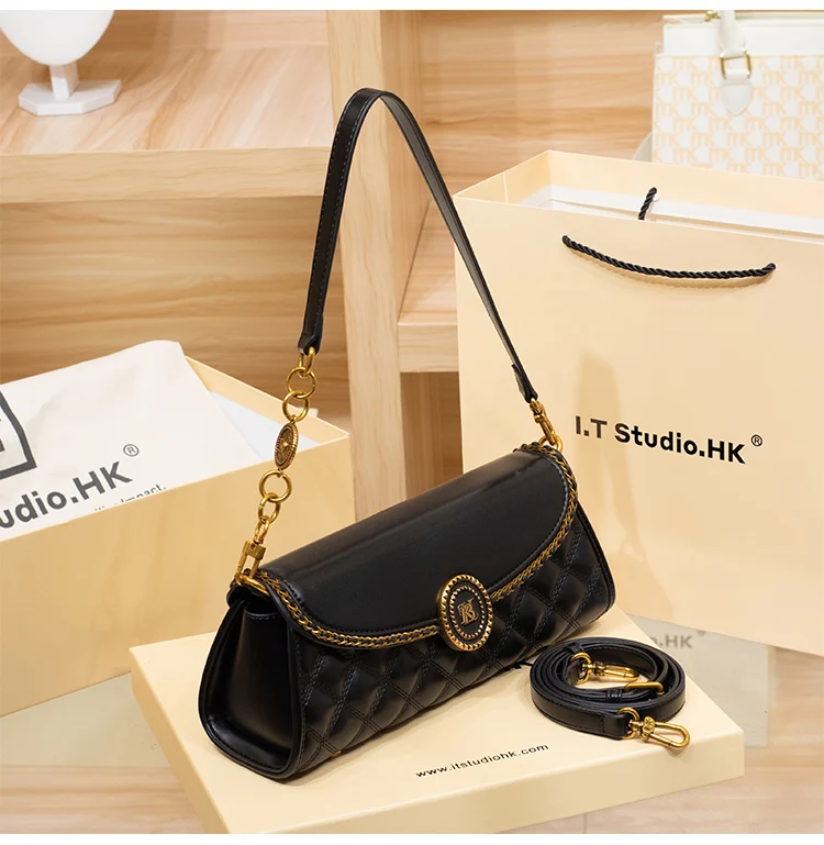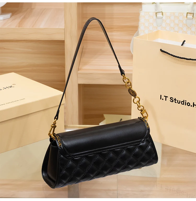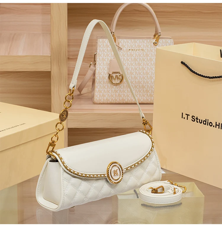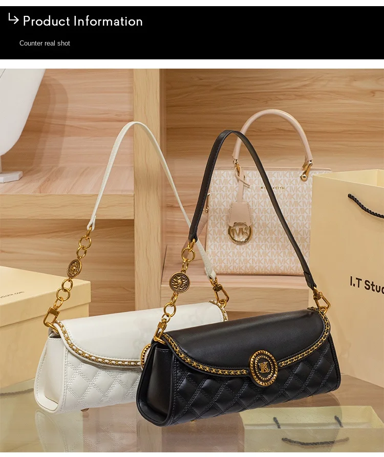 Elevate your everyday style with this chic diamond-lattice baguette bag, designed for women who love a blend of elegance and modern versatility. Crafted from smooth, soft-touch PVC with a quilt-inspired texture, it adds a refined edge to both casual denim looks and sophisticated evening outfits. The secure zipper-and-hasp closure keeps your essentials safe, while the front flap pocket offers convenient access for small must-reach items.