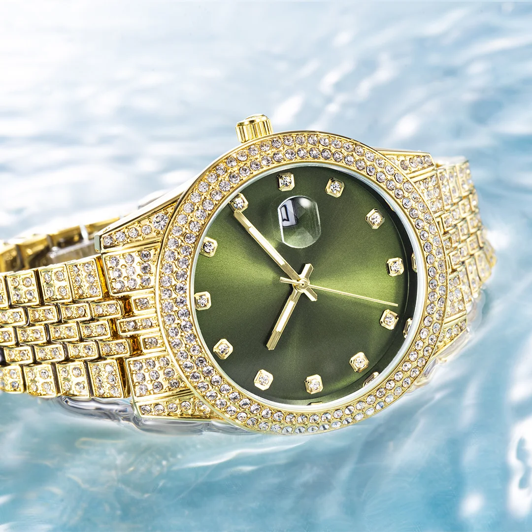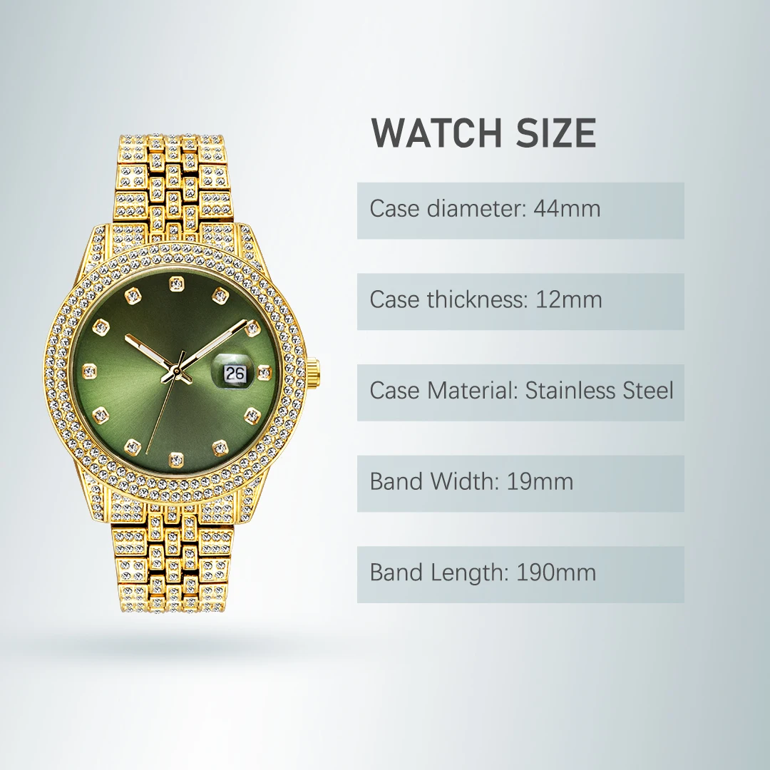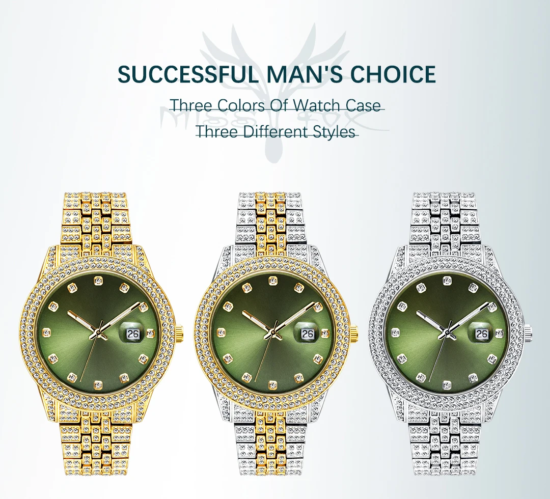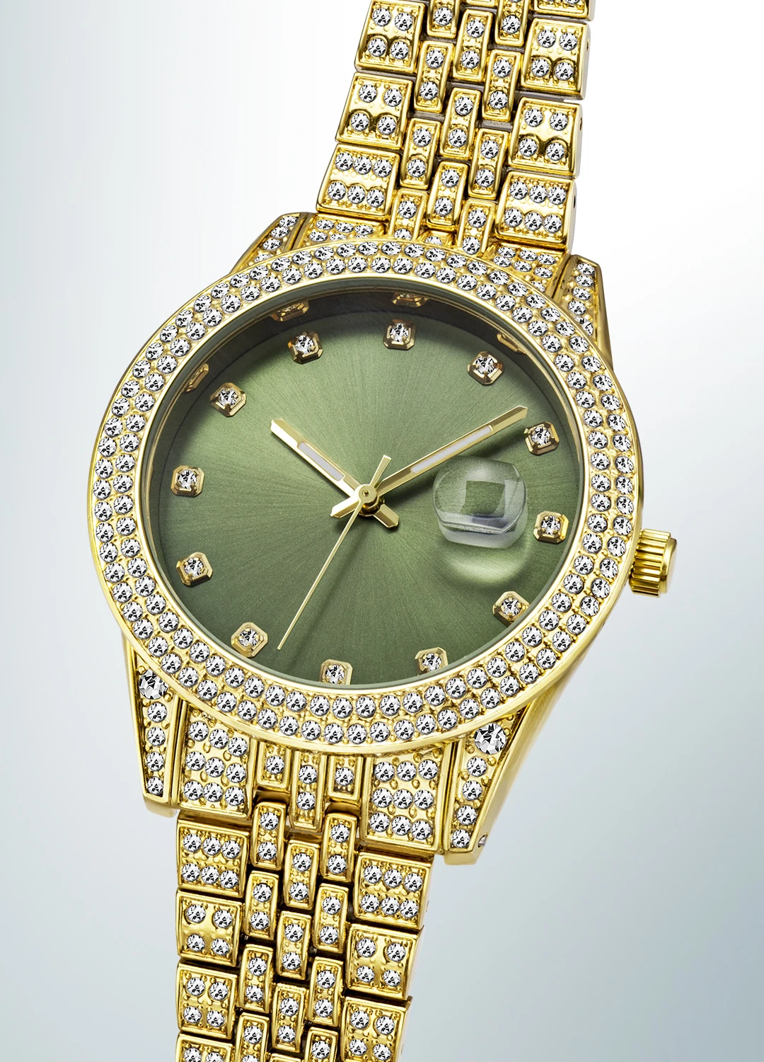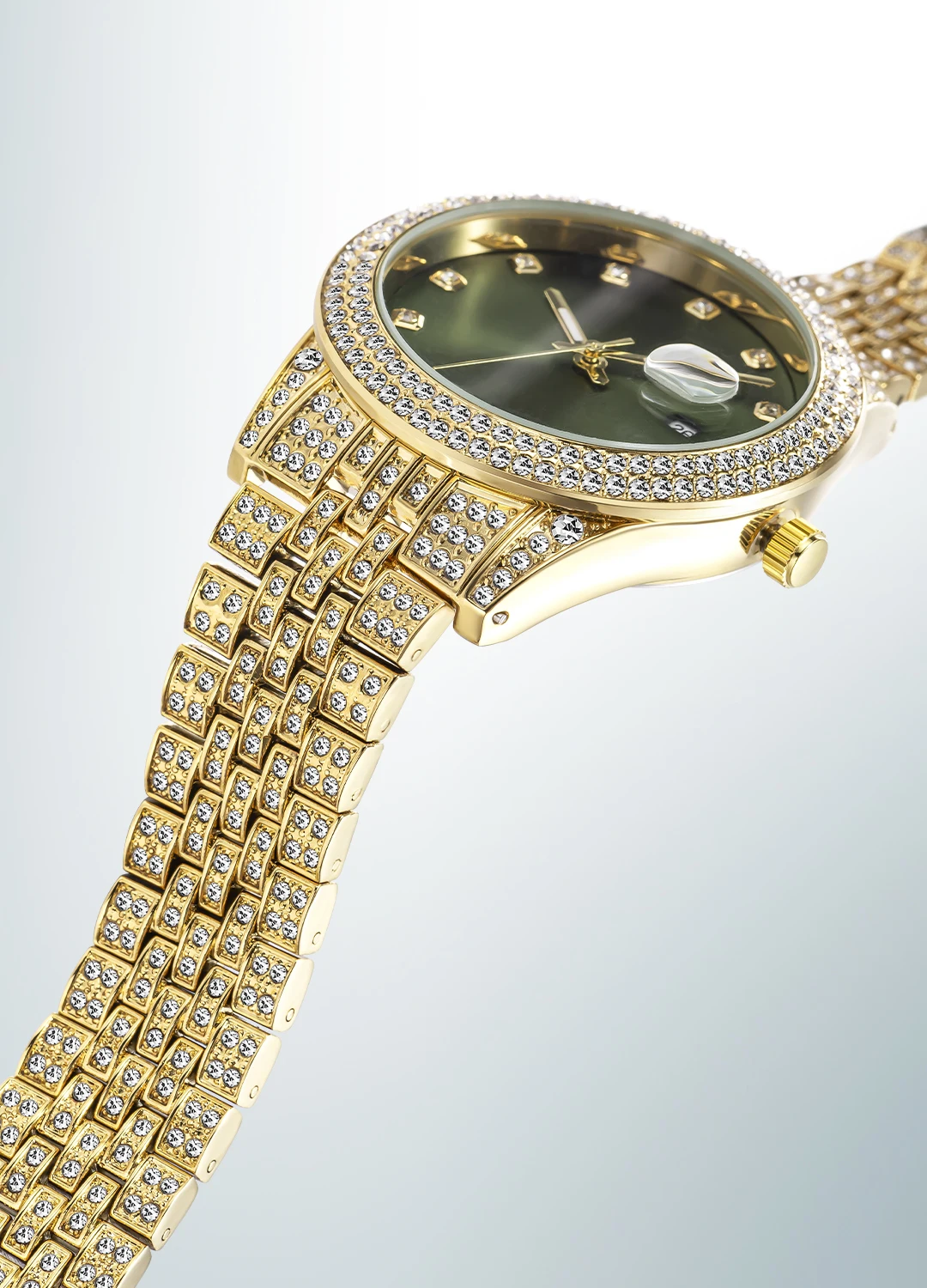 Make a bold statement with the MISSFOX 3083, a striking timepiece crafted for women who love standout elegance mixed with modern flair. Featuring a vibrant green dial framed by shimmering stones and a polished alloy case, this watch instantly elevates any outfit with its luxurious presence. The wide stainless-steel band and generous dial size create an eye-catching look, while the minimalist, numberless display maintains a clean and contemporary aesthetic.