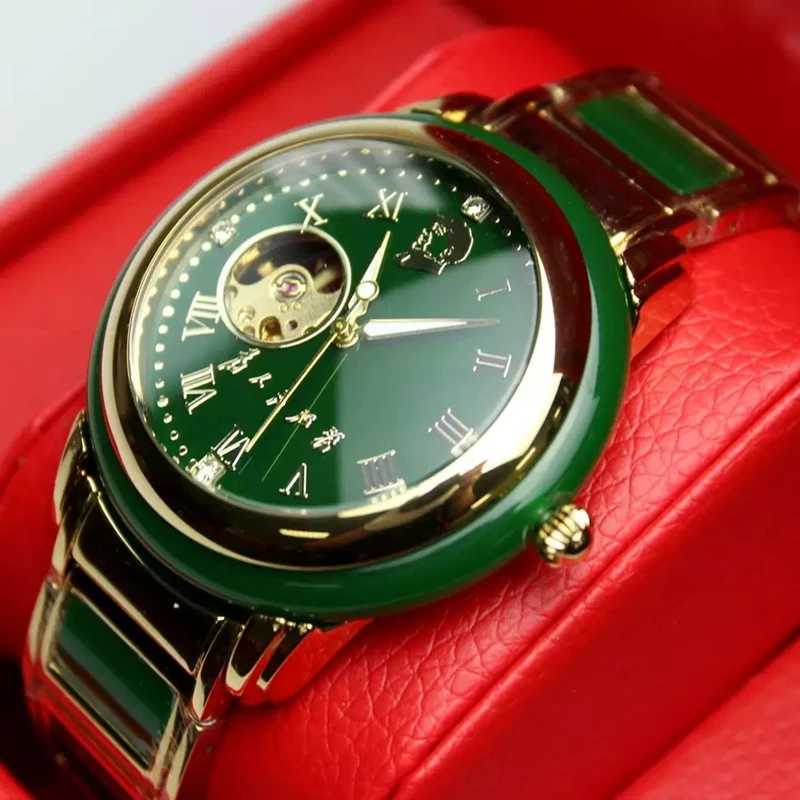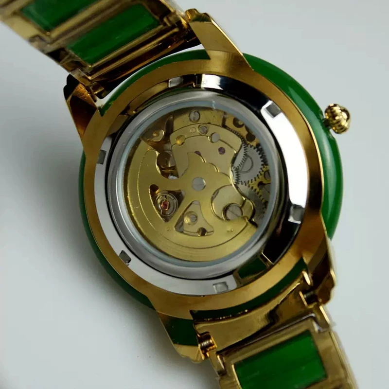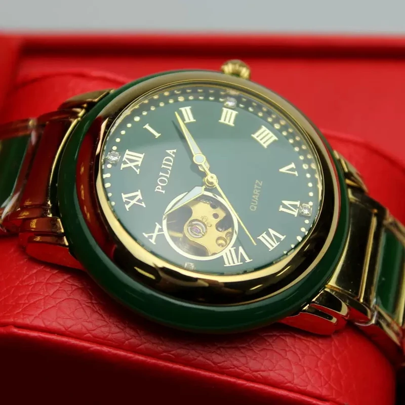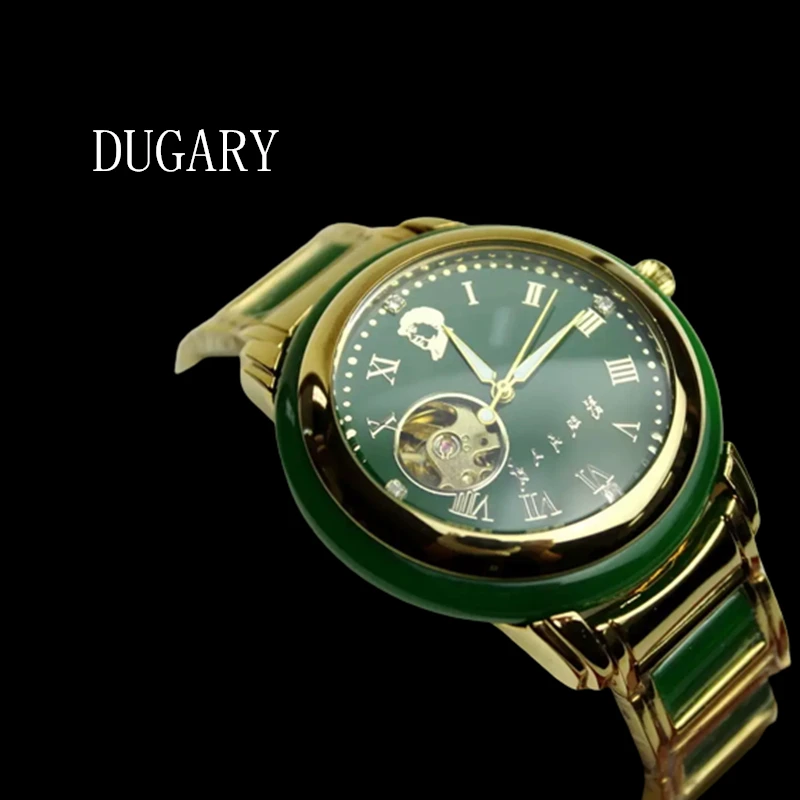 Bold, refined, and built for those with a taste for unique luxury, the DUGARY 69333 is a true statement in mechanical craftsmanship. Its polished gemstone-embedded case catches the light with a natural brilliance, while the clean, numberless dial creates a powerful minimalist presence. The elegant stainless-steel bracelet and curved profile blend modern sophistication with timeless appeal, making this watch as striking in evening settings as it is in everyday style.
