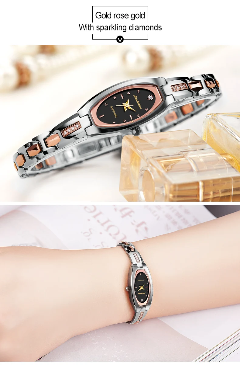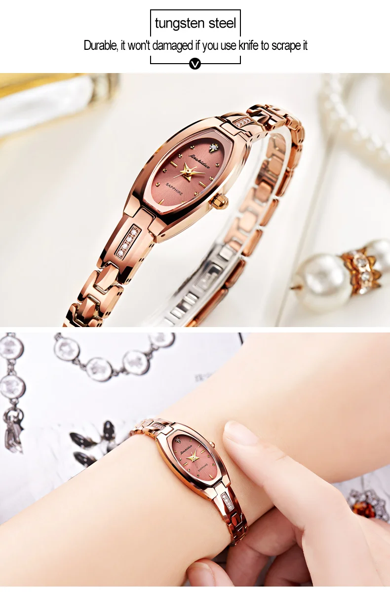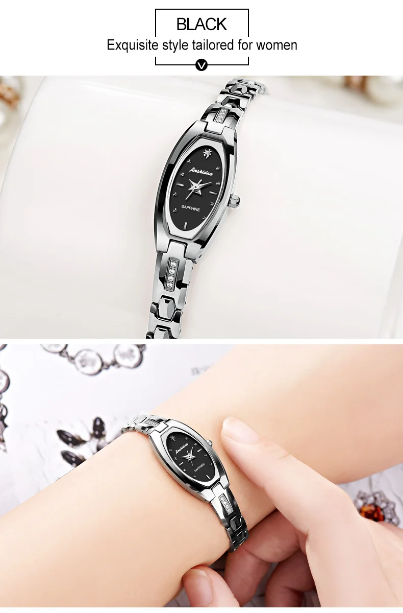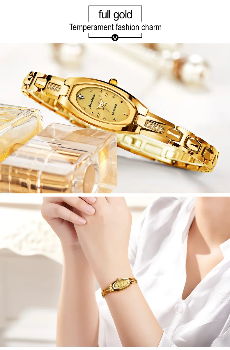 Discover refined luxury in a beautifully compact form with the JSDUN 6531, a timepiece created for women who appreciate elegance in every detail. Crafted from premium tungsten steel, its sleek oval case and matching bracelet deliver a polished, modern look with exceptional durability and lasting shine. The minimalist numberless dial, paired with shimmering diamond-like accents, adds a touch of quiet glamour, while the sapphire-crystal window provides clarity and scratch resistance for lasting brilliance.