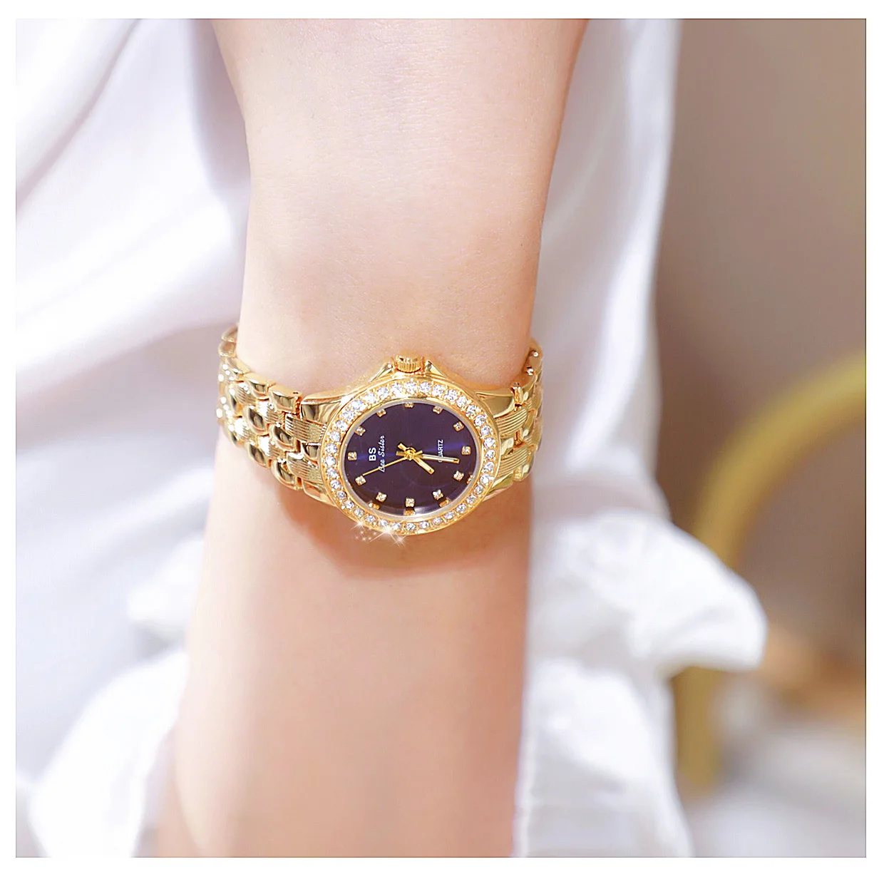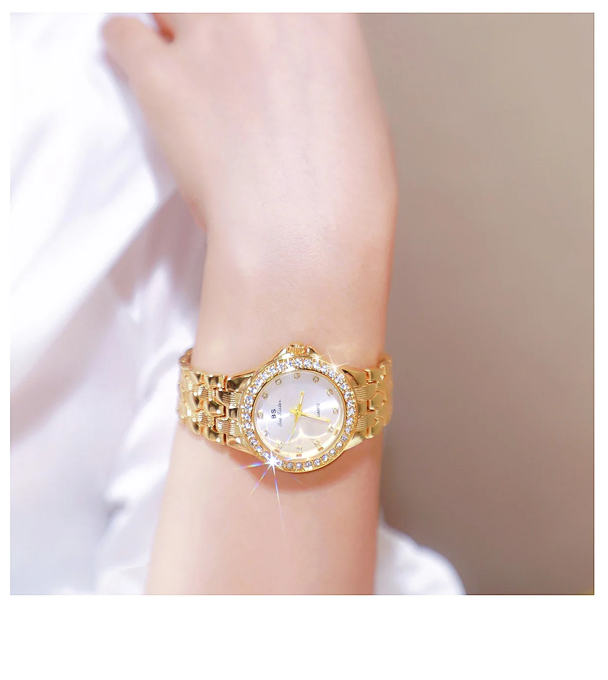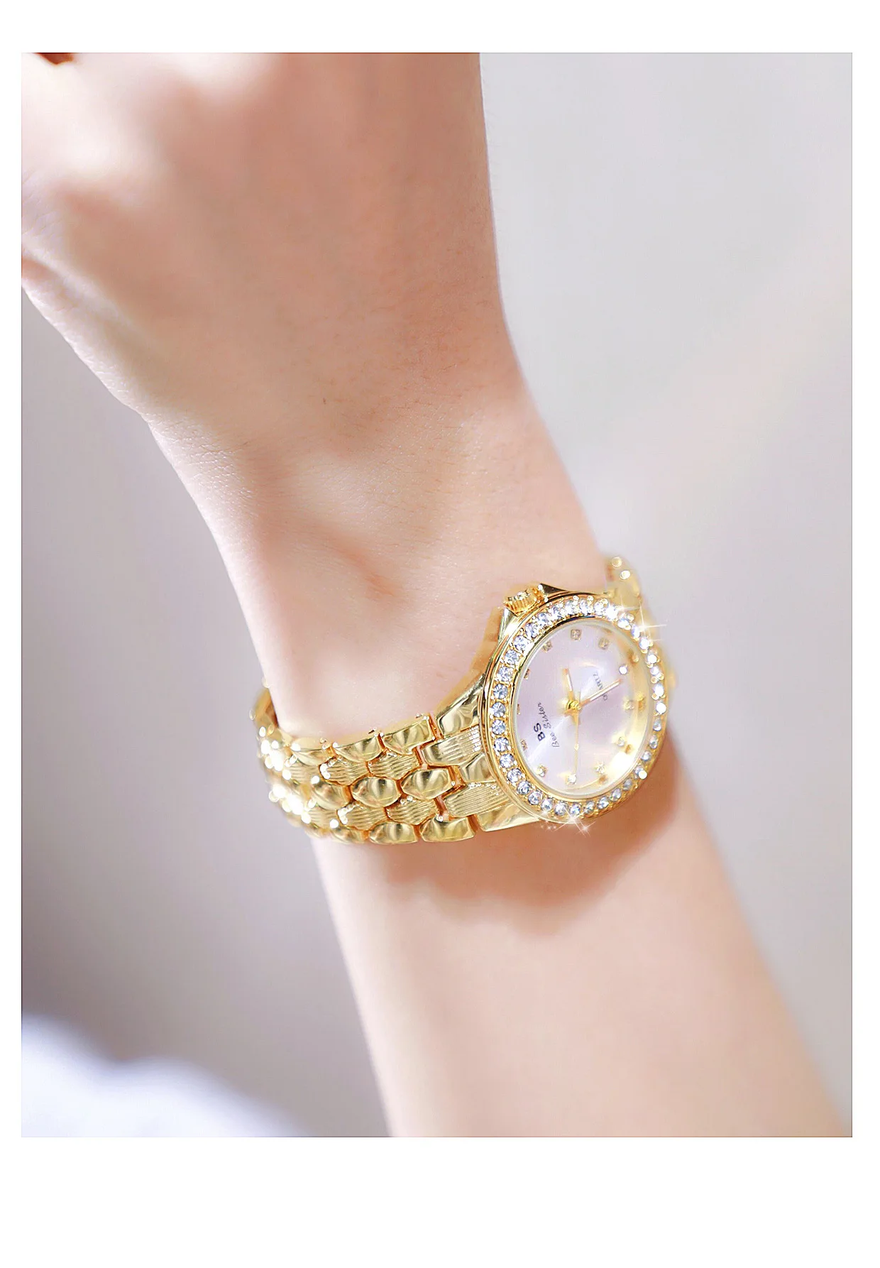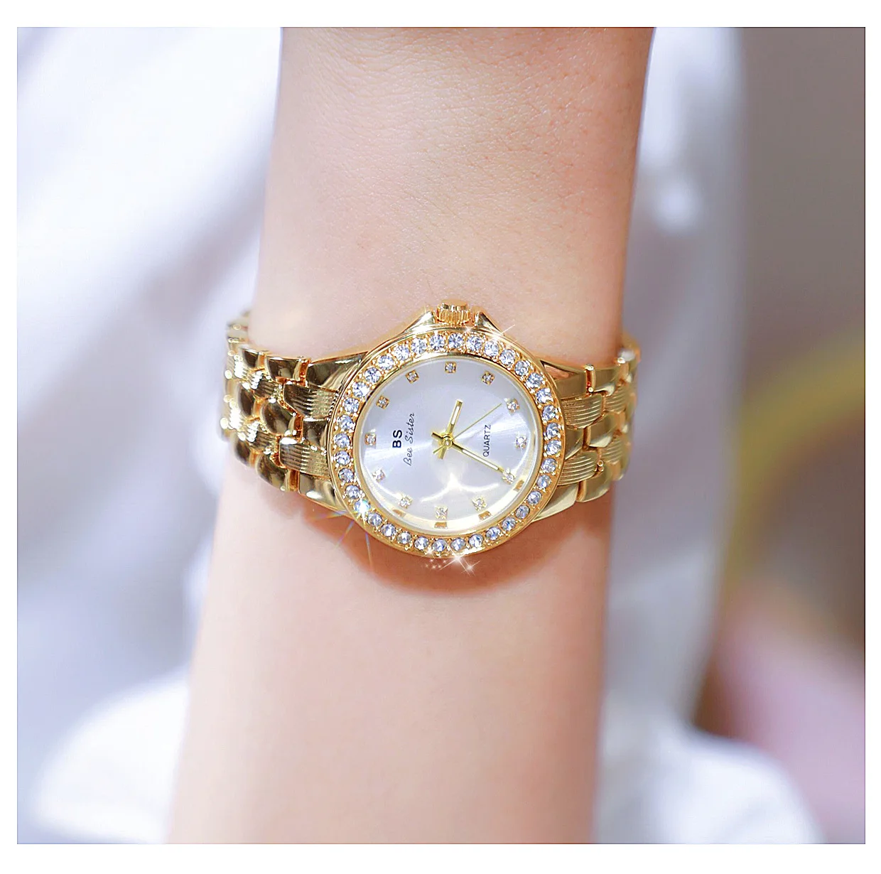 Quartz Watch For Women Fashion Luxury Full Diamond Dial Small Gold Watch Stainless Steel Strap Women Watch Gift Reloj Para Mujer