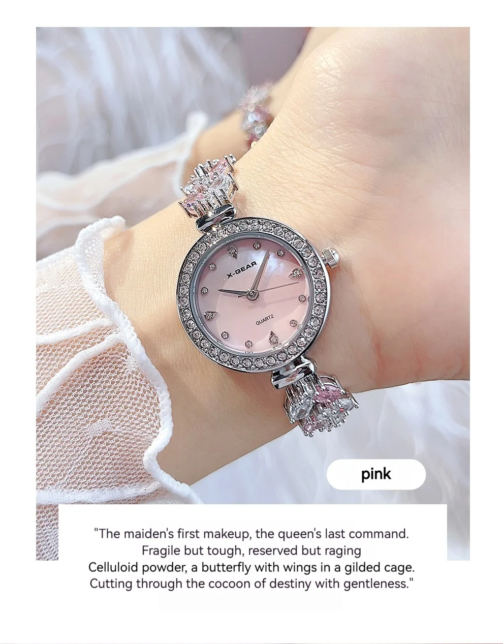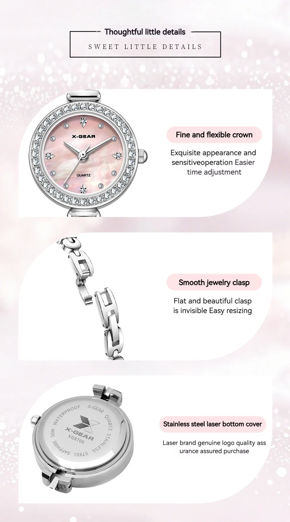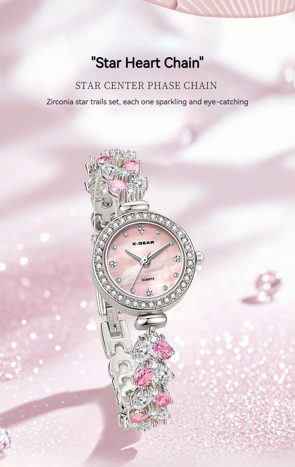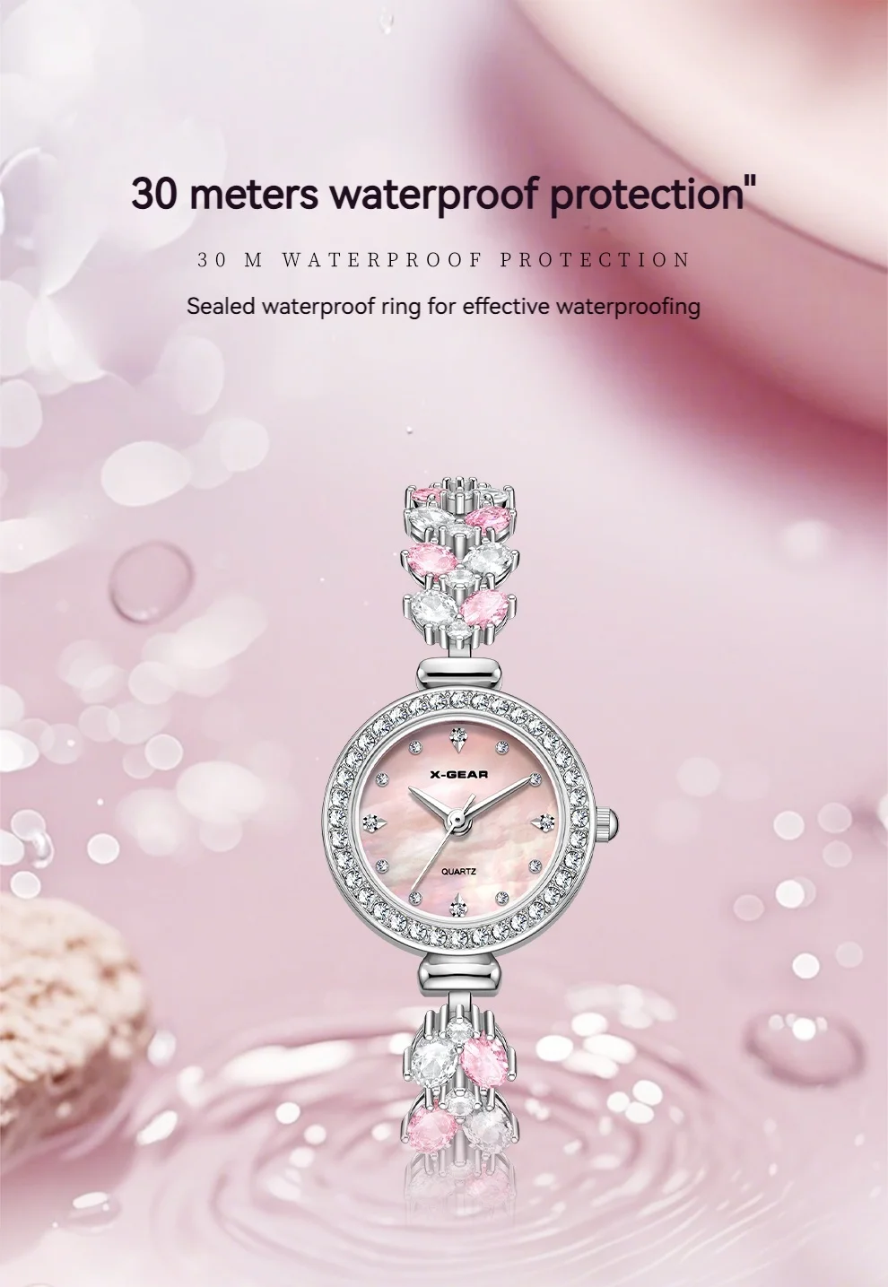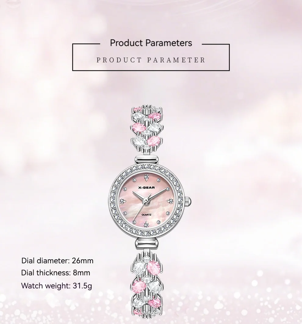 Add a touch of refined elegance to every outfit with this petite luxury watch from X-GEAR. Its slender stainless-steel band and polished round case create a sleek, jewelry-like look, making it the perfect accessory for both everyday wear and special occasions. The minimalist, numberless dial enhances its modern sophistication, while the Hardlex crystal lens provides durability and clarity for long-lasting shine.