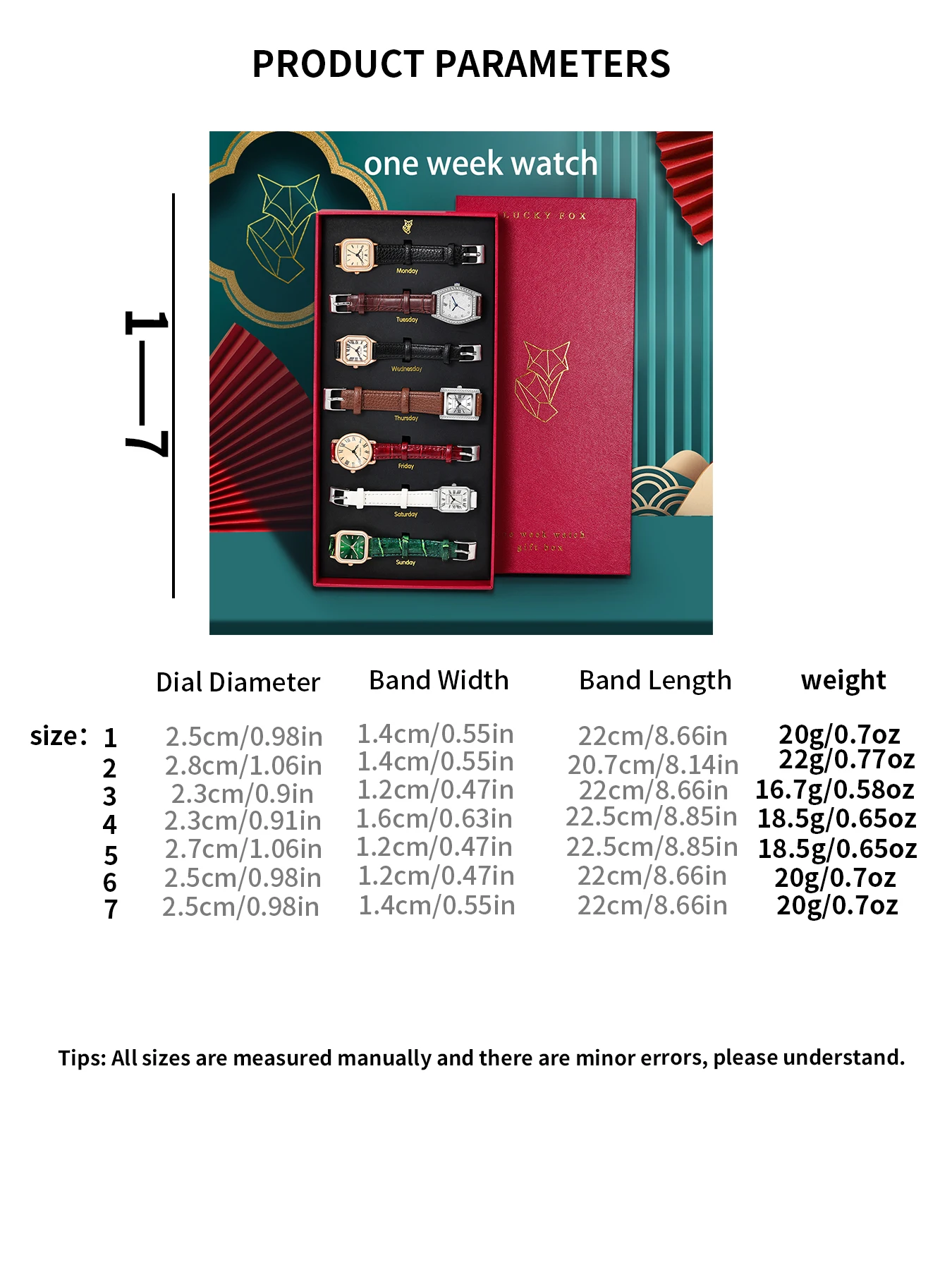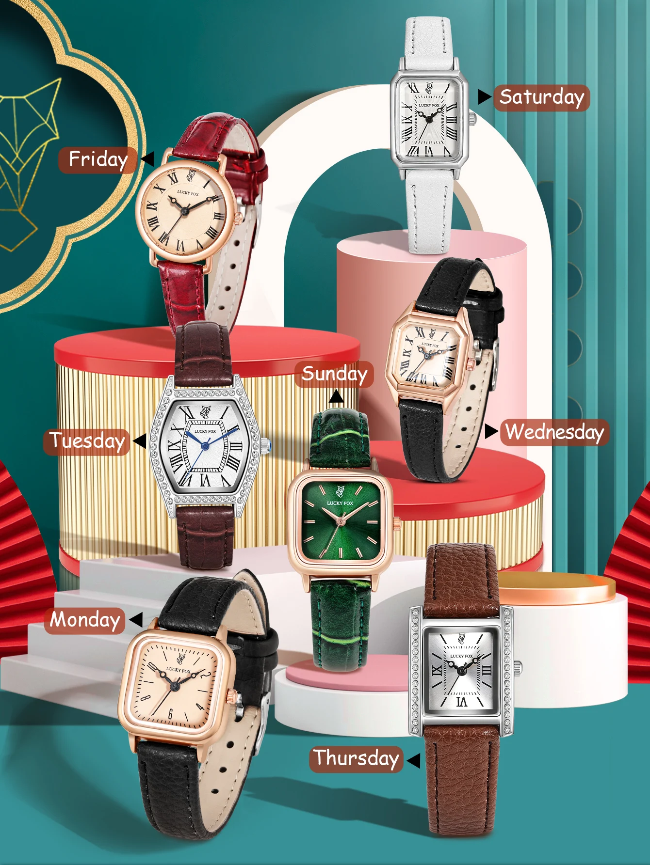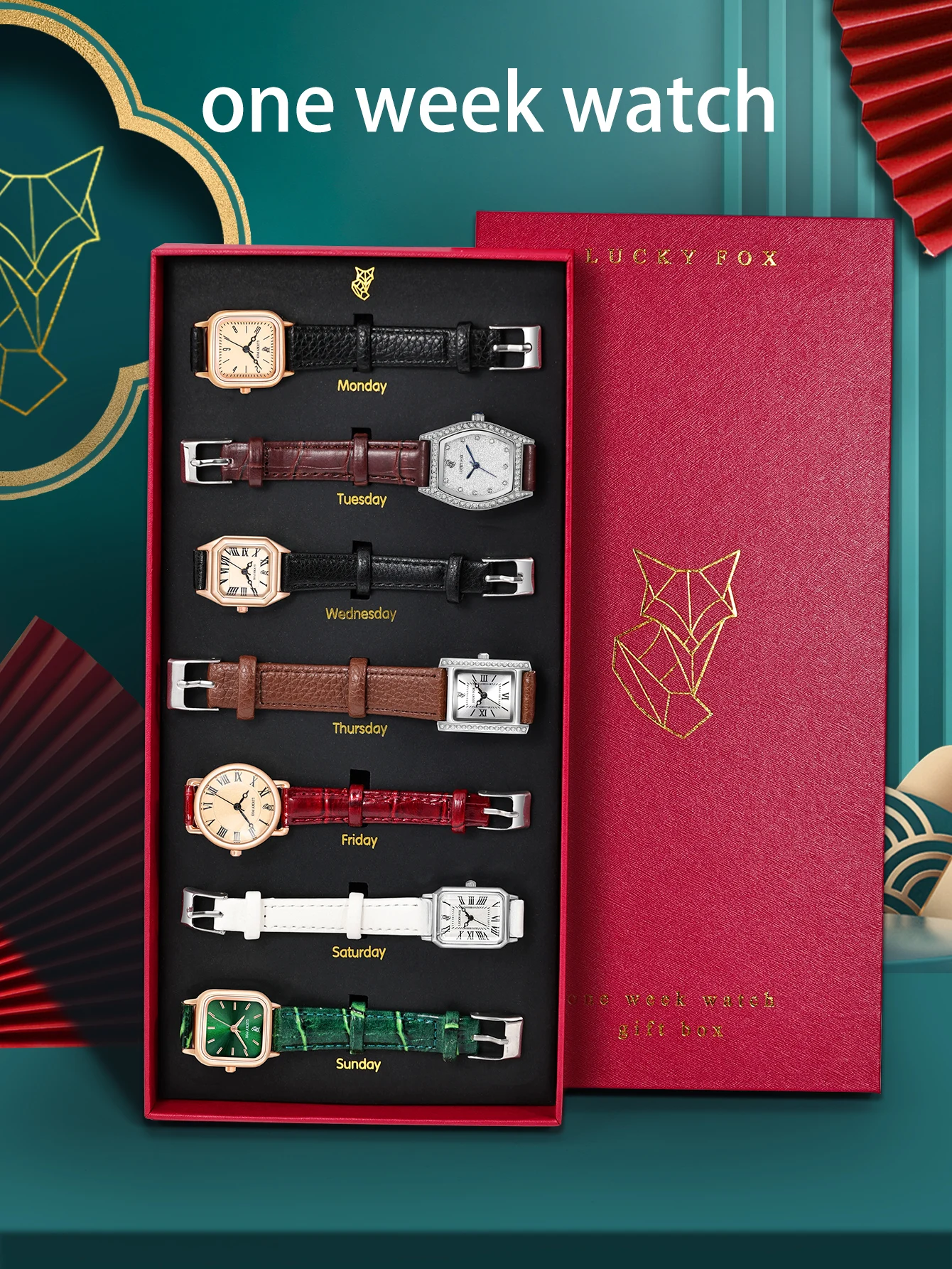 Discover effortless versatility with the LUCKYFOX One Week Watch Set, thoughtfully designed for women who love to switch up their style. Featuring seven elegant watches—each with a smooth PU leather strap and charming round dial—this collection ensures the perfect match for every outfit and mood. From soft everyday tones to chic evening hues, each piece blends fashion and function with a refined Roman-numeral display and delicate, feminine silhouette.