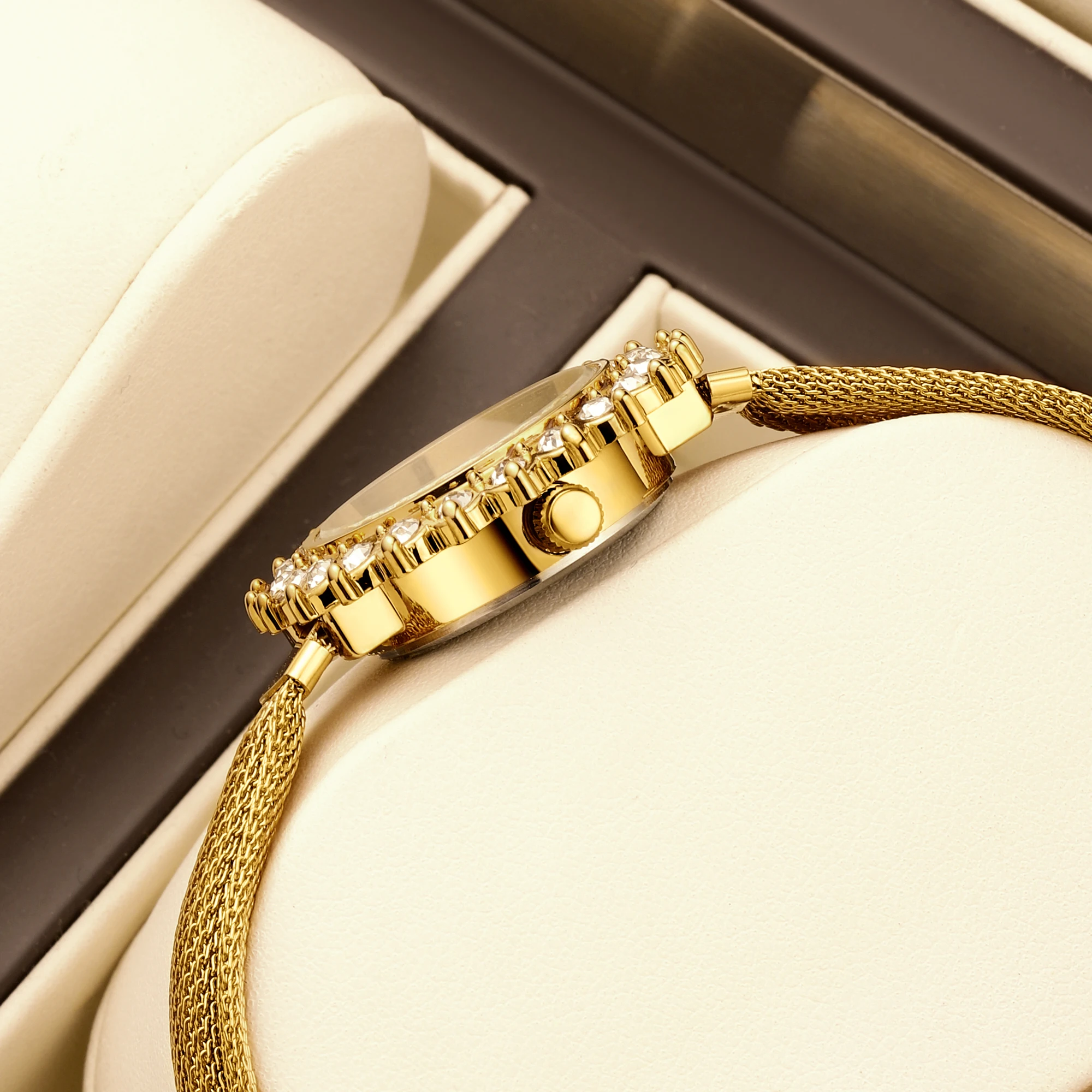 Graceful and refined, the YaLaLuSi 377 brings a touch of understated glamour to everyday style. Its petite round dial, accented with a sparkling rhinestone finish, creates a delicate and feminine look that shines effortlessly whether paired with work attire or evening wear. The slim stainless-steel mesh band hugs the wrist with lightweight comfort, while the minimalist numberless face keeps the design clean, modern, and elegant.