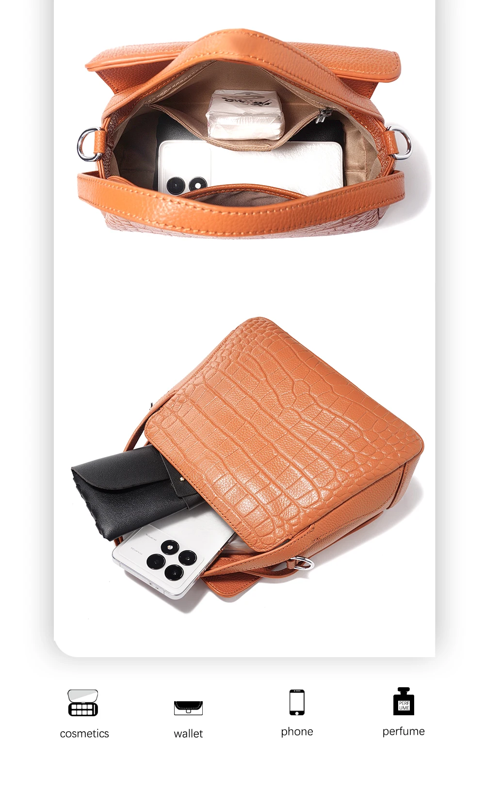 Elevate your everyday wardrobe with this refined leather box bag, designed for women who appreciate timeless craftsmanship and modern versatility. Made from premium cow leather, it boasts a smooth, luxurious feel paired with a structured silhouette that holds its shape beautifully. The clean, solid finish creates a sophisticated look, while the flap cover adds a sleek touch of elegance. Inside, multiple compartments and secure pockets provide smart organization for your essentials, ensuring practical use without compromising style.